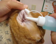 体質的に外耳炎になりやすい子は、専用のクリーナーで定期的に耳を洗浄します。