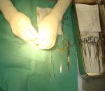 ・♂(オス)・・・・陰嚢上部の皮膚を切開し、睾丸を摘出します